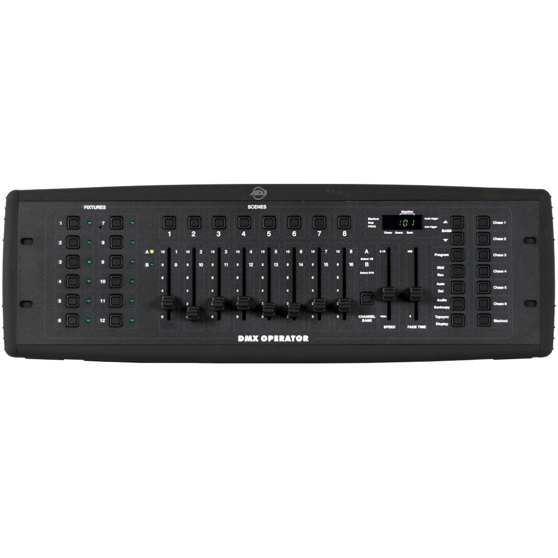 A top DMX controller, ADJ’s DMX Operator controls up to 192 DMX channels. With it, you can record up to 6 chases which you can then playback with separate fade and step speeds. The 8 individual faders provide easy controllability for any DMX 512 intelligent fixture.