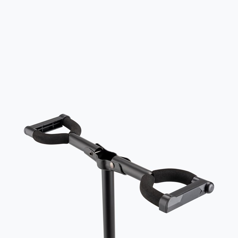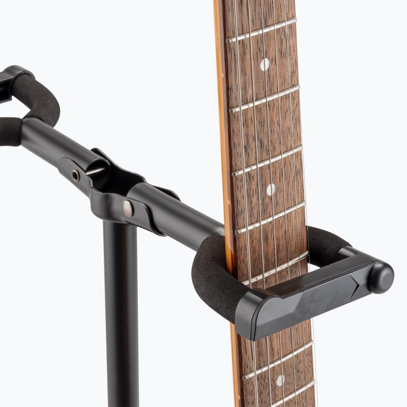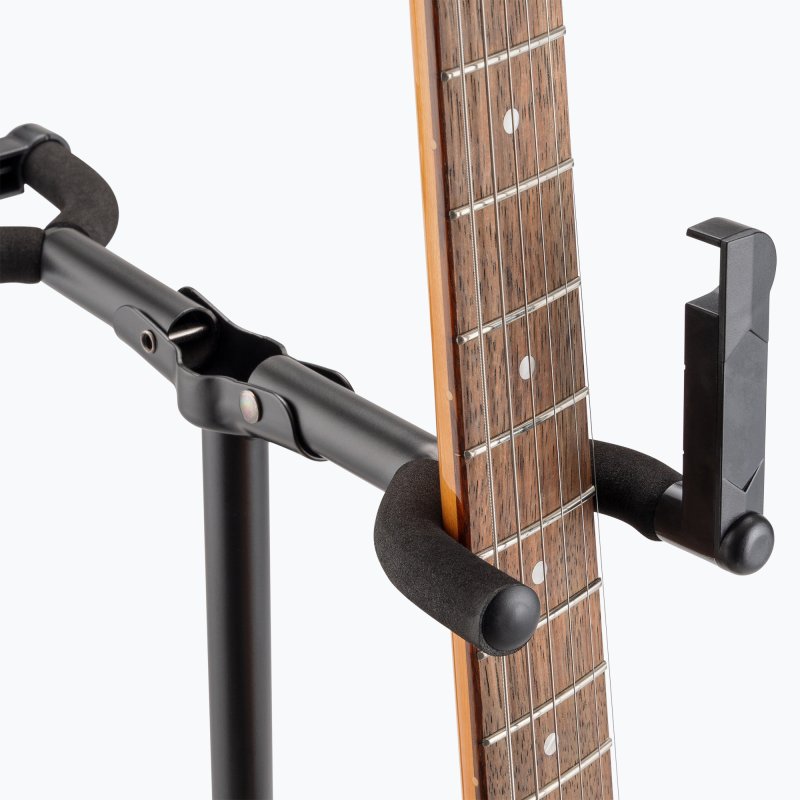 - Padding on the yokes protects the guitars from scratches