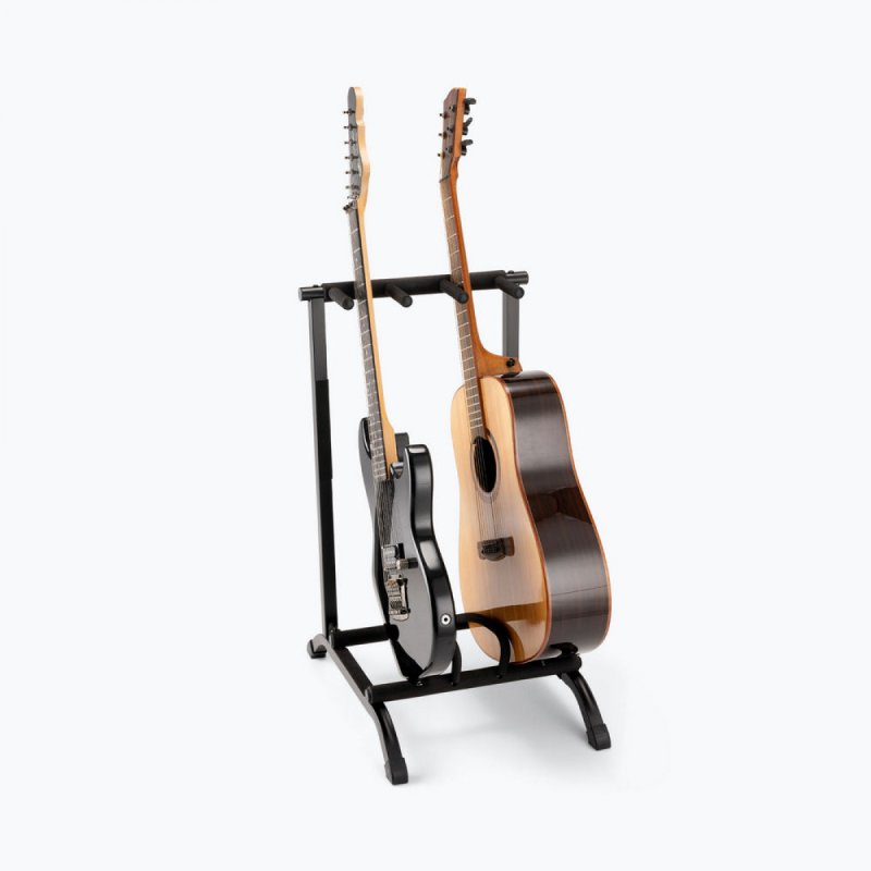 - Â Portable stand safely stores multiple guitars and enables quick access