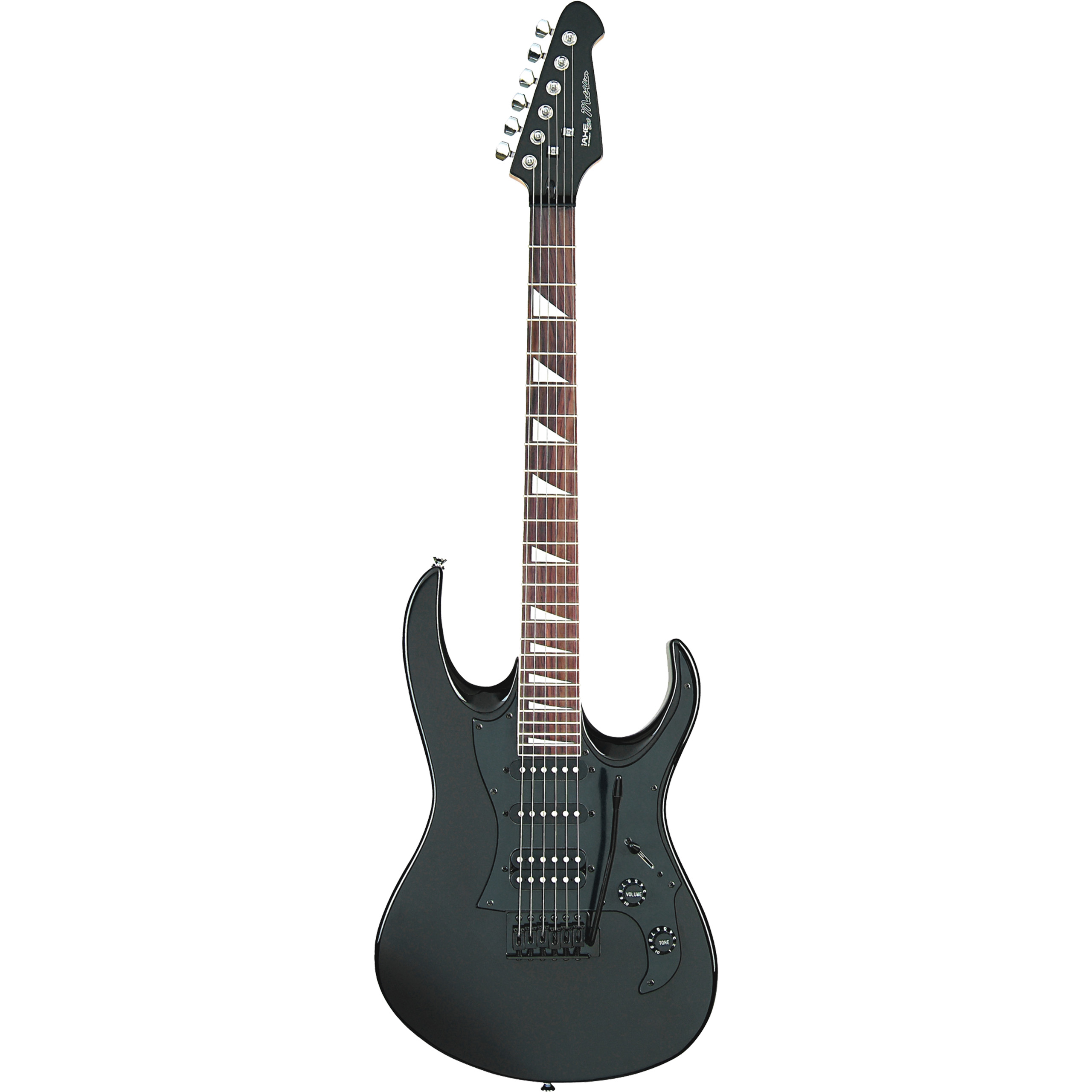 • Amazing double-cutaway electric guitar with solid aspen body, 24 medium jumbo frets, rosewood fingerboard on hard maple neck, powerful SSH pickup configuration, vintage vibrato bridge