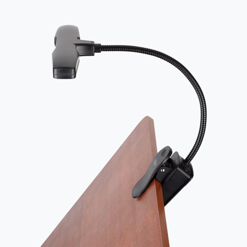 - Securely clips to the bookplate of your music stand