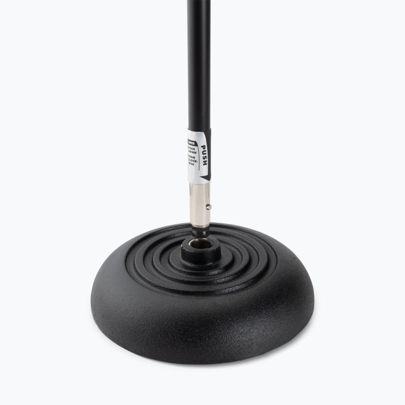 - Â Solid 5/8″-27 threaded upper shaft with tightening washer securely mounts mic accessories