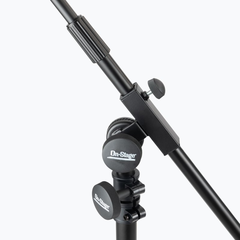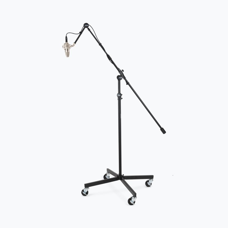 -  Telescoping 43″–79″ boom features a counterweight to balance mics and prevent tipping