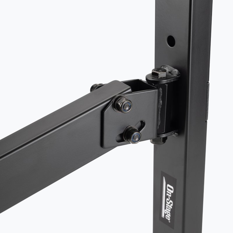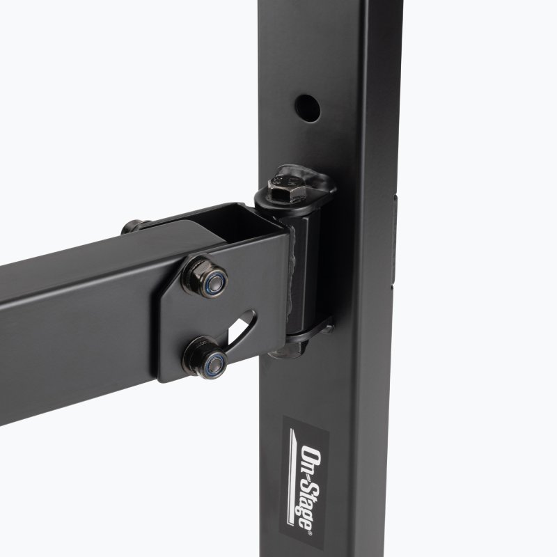 - Fully upright, the bracket accommodates speaker cabinets up to 22″ deep