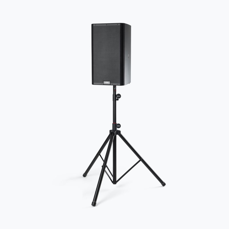 - Â Pneumatic piston supplies leverage for safely raising and lowering a mounted speaker