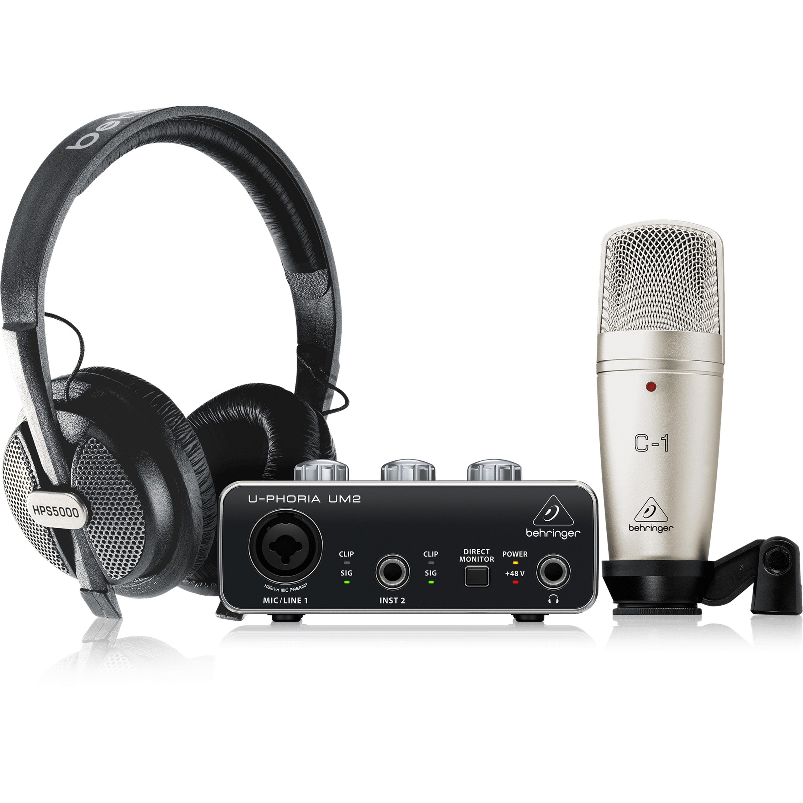• Get a full recording studio “out of the box” including U-PHORIA UM2 USB audio interface, C-1 condenser microphone, HPS5000 studio headphones and more