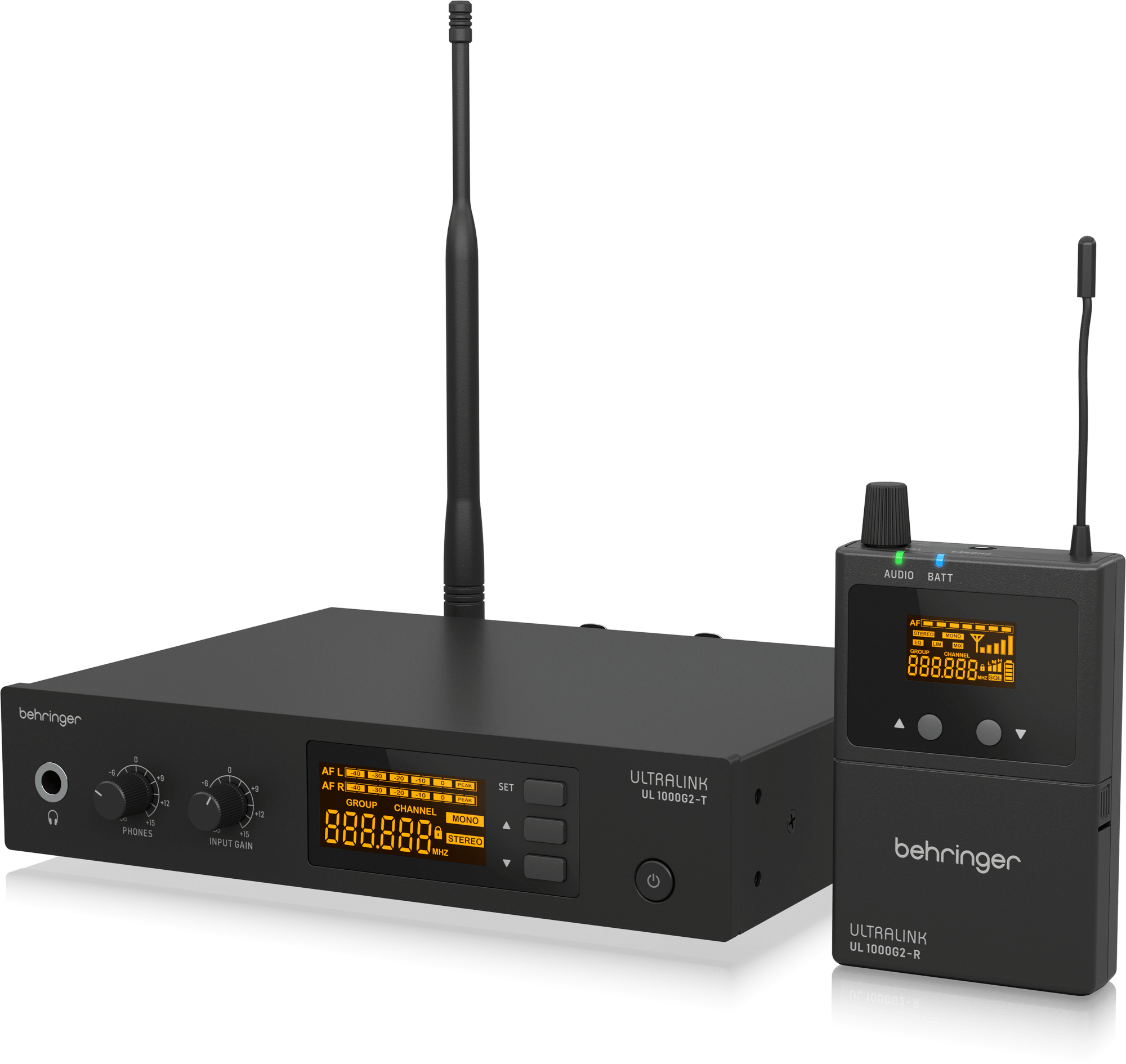 • High-performance wireless transmitter, belt-pack receiver and monitoring earphones