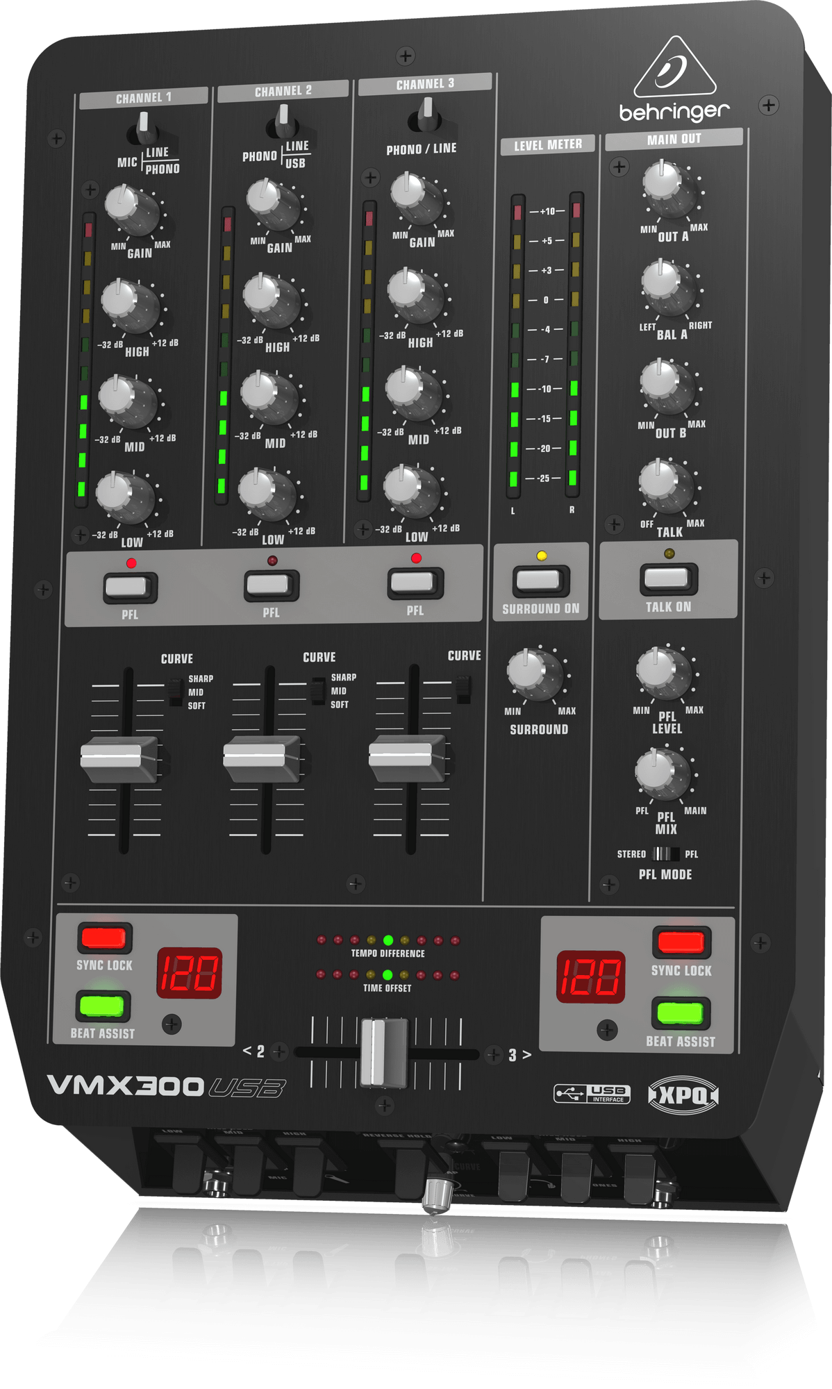 Professional 3-Channel DJ Mixer with USB/Audio Interface, BPM Counter and VCA Control